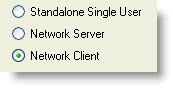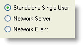 (2.1 Standalone Single User, 2.2 Network Server, 2.3 Network Client).