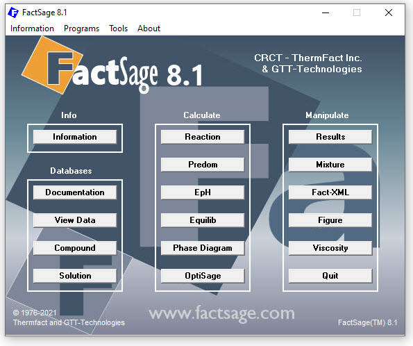 'Information > FactSage 8.1 ~ News ~ from www.FactSage.com ...'