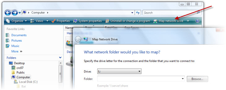 Click on Map Network Drive to assign a letter - here it is "L".