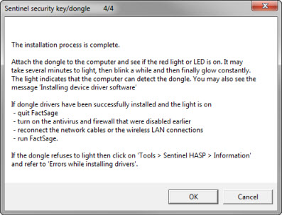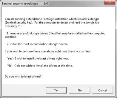 The Sentinel HASP dongles can only be accessed by FactSage if the recent Sentinel dongle drivers (files) have been installed on the computer.