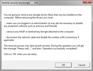 'Tools > Sentinel Security Key (dongle) > Remove drivers'