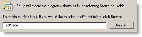 Where should Setup place the program shortcut? We recommend you use the default name FactSage. |