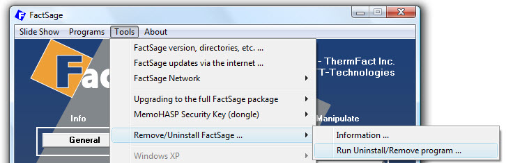 To remove FactSage click on